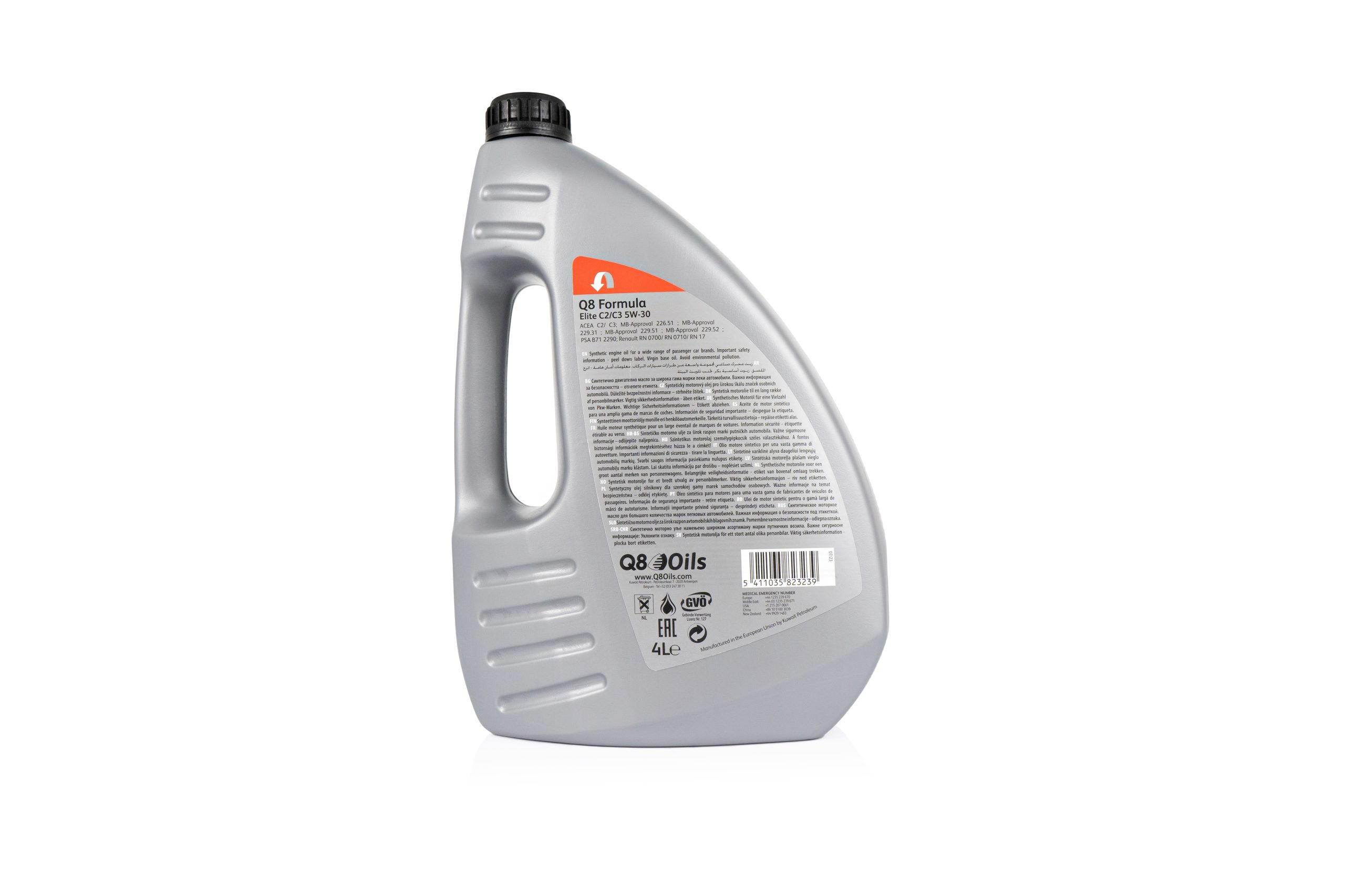 Q8 Formula Elite C2/C3 5W-30 – чудове синтетичне моторне масло для легкових автомобілів, яке забезпечує кращу в своєму класі ефективність витрати палива, сумісність з біопаливом і винятковий захист двигунів Peugeot і Citroen (PSA). Олива перевершує вимоги ACEA C2 і C3 і відповідає суворим вимогам специфікації PSA B71 2290 і Renault RN17.